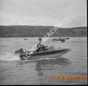Man in a motorboat in the Entrepeñas reservoir.